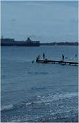 vrachtschepen varen voorbij terwijl hij staart